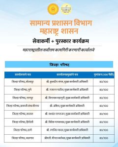 या निकषांवर उत्कृष्ट कामगिरी करणाऱ्या विविध संस्था, महामंडळे, स्वायत्त संस्था, महानगरपालिका व नगर परिषद यांचे गुणांकन २६ जानेवारी २०२६ रोजी जाहीर झाले होते. मात्र निवडणूक आचारसंहितेमुळे प्रलंबित ठेवण्यात आलेल्या जिल्हा परिषद कार्यालयांचा निकाल आज अधिकृतरीत्या जाहीर करण्यात आला आहे.