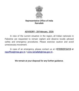 ईमेल : repoffice@mea.gov.in / cons.ramallah@mea.gov.in